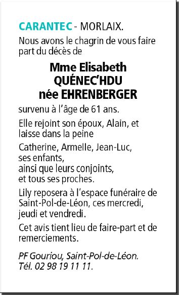 de Madame Elisabeth QUÉNEC'HDU née EHRENBERGER