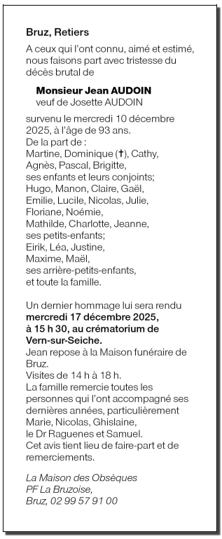 Décédé à Rennes (35000) le mercredi 10 décembre 2025