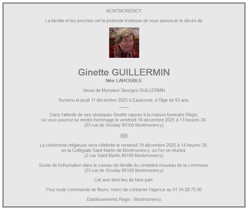 de Madame Ginette GUILLERMIN née LAROUBLE