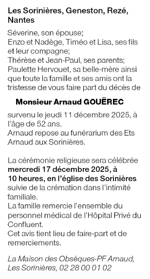 Cet espace « condoléances » est dédié à la mémoire de Monsieur Arnaud GOUËREC.