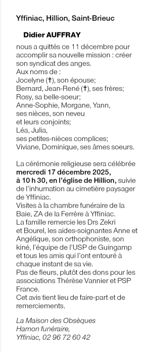 Décédé à Pabu (22200) le jeudi 11 décembre 2025
