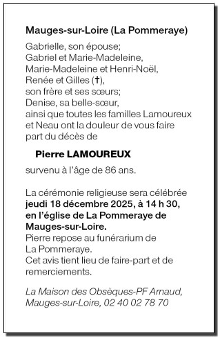 Cet espace « condoléances » est dédié à la mémoire de Monsieur Pierre LAMOUREUX.