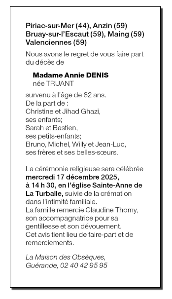 de Madame Annie DENIS née TRUANT