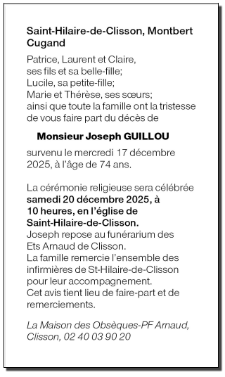 Cet espace « condoléances » est dédié à la mémoire de Monsieur Joseph GUILLOU.