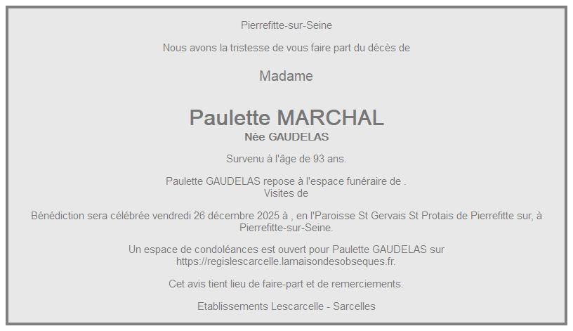 Cet espace « condoléances » est dédié à la mémoire de Madame MARCHAL Paulette GAUDELAS.