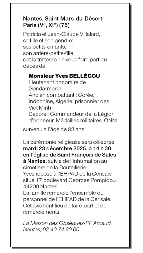 Décédé à Nantes (44200) le vendredi 19 décembre 2025