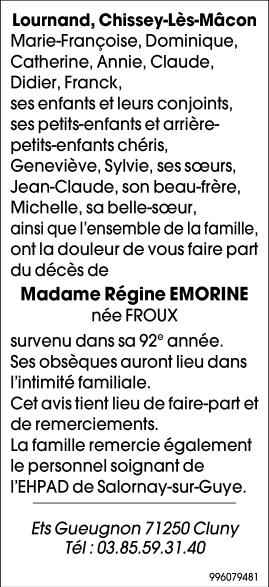 de Madame Regine EMORINE née FROUX