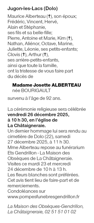 de Madame Josette ALBERTEAU née BOURIGAULT