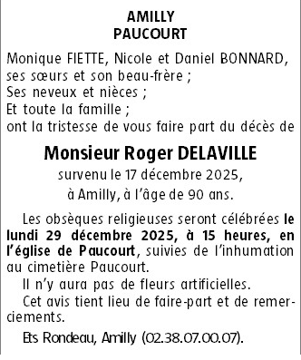Cet espace « condoléances » est dédié à la mémoire de Monsieur Roger DELAVILLE.