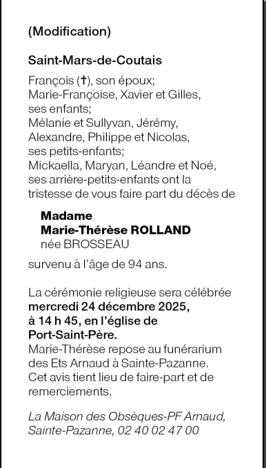 de Madame Marie-Thérèse ROLLAND née BROSSEAU