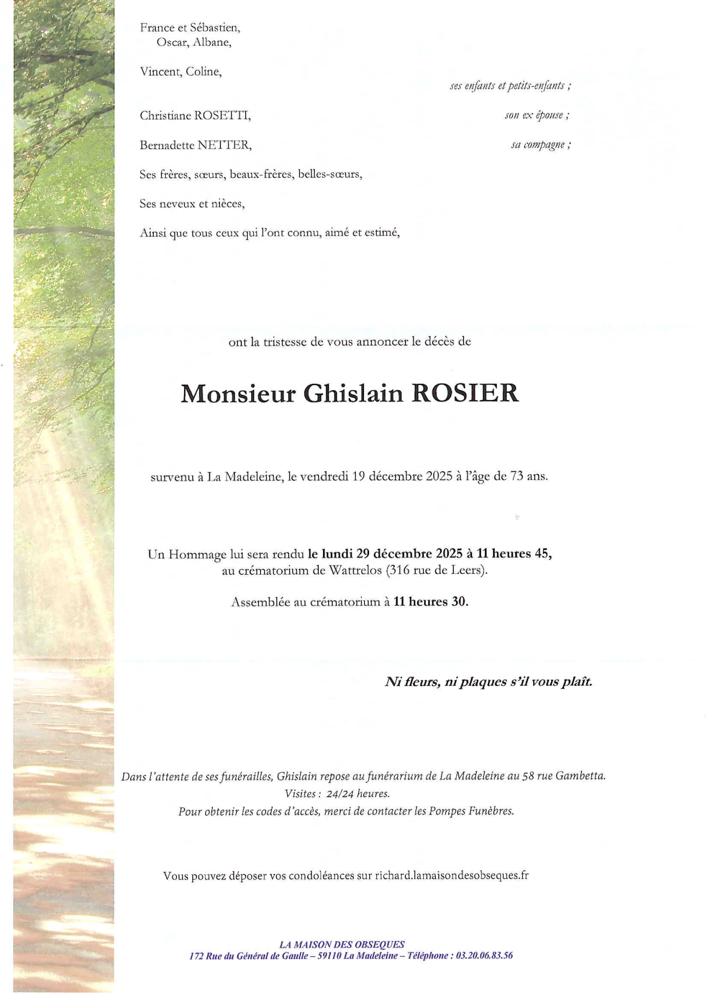 Cet espace « condoléances » est dédié à la mémoire de Monsieur Ghislain ROSIER.