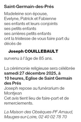 Cet espace « condoléances » est dédié à la mémoire de Monsieur Joseph COUILLEBAULT.