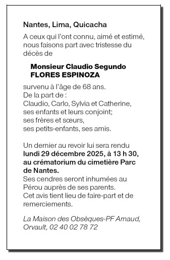 Cet espace « condoléances » est dédié à la mémoire de Monsieur Claudio FLORES ESPINOZA.