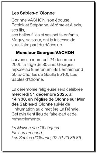Cet espace « condoléances » est dédié à la mémoire de Monsieur Georges VACHON.