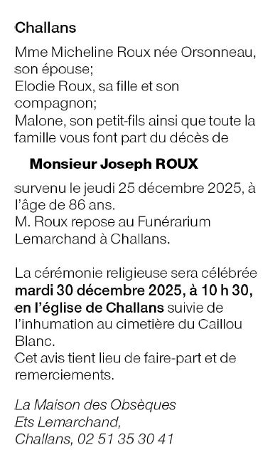 Cet espace « condoléances » est dédié à la mémoire de Monsieur Joseph ROUX.