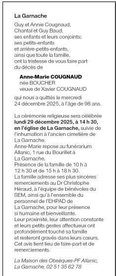 de Madame Anne-Marie COUGNAUD née BOUCHER