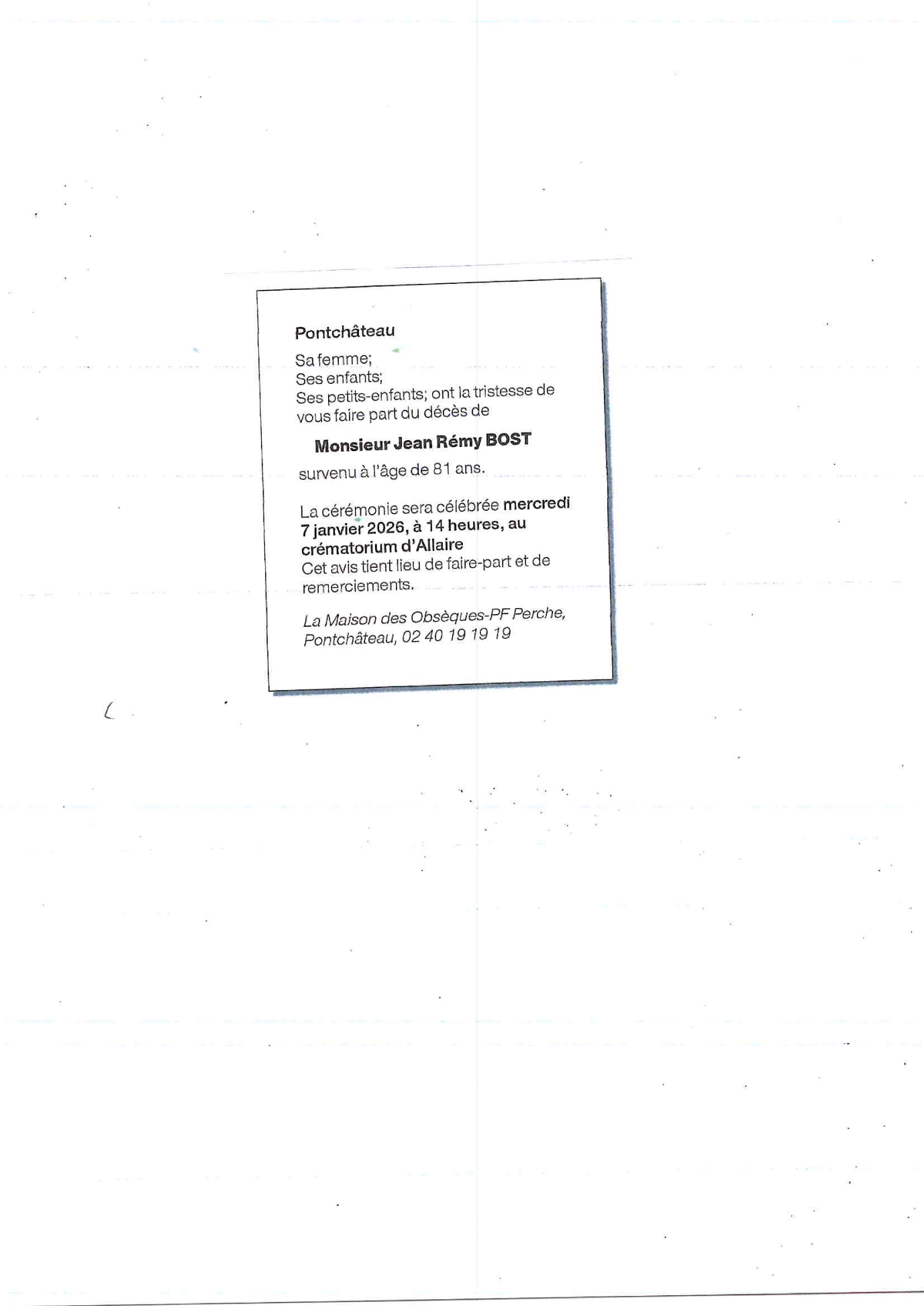 de Monsieur Jean Rémy BOST