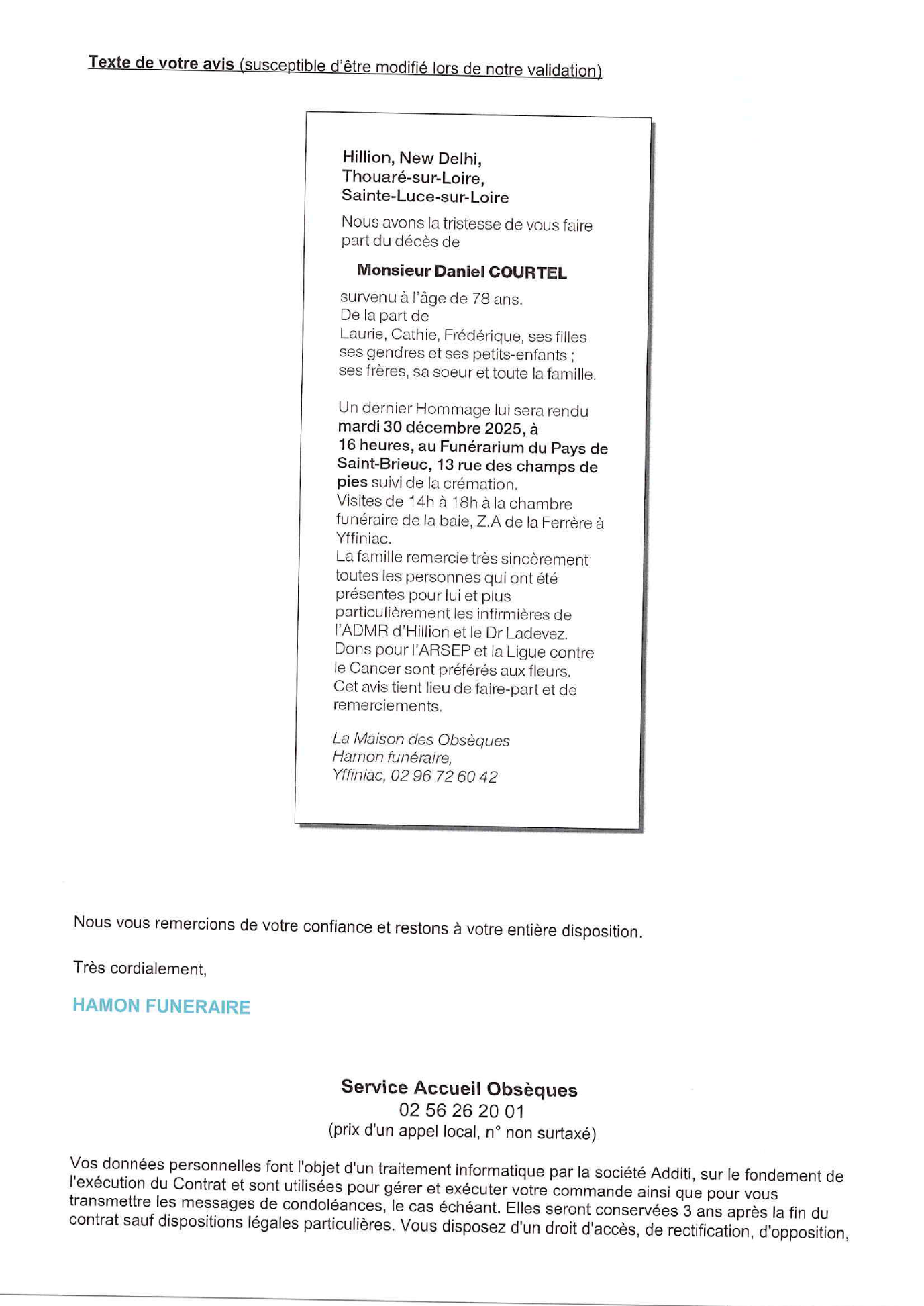 Cet espace « condoléances » est dédié à la mémoire de Monsieur Daniel COURTEL.