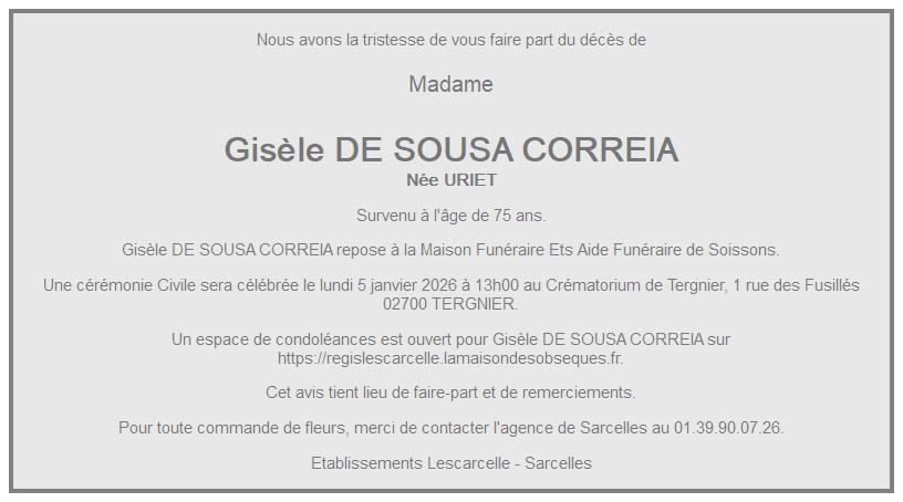 de Madame Gisèle DE SOUSA CORREIA née URIET