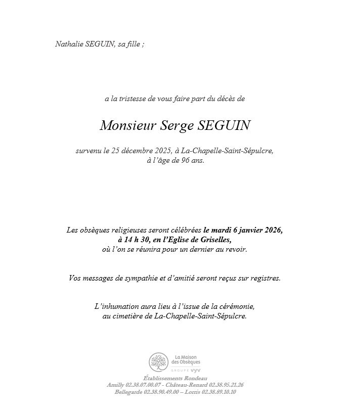 Cet espace « condoléances » est dédié à la mémoire de Monsieur Serge SEGUIN.