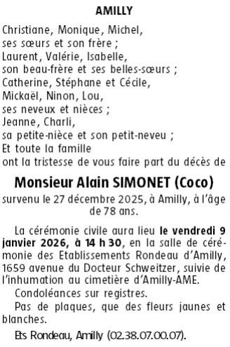 Cet espace « condoléances » est dédié à la mémoire de Monsieur Alain SIMONET.