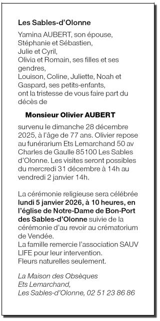 Cet espace « condoléances » est dédié à la mémoire de Monsieur Olivier AUBERT.