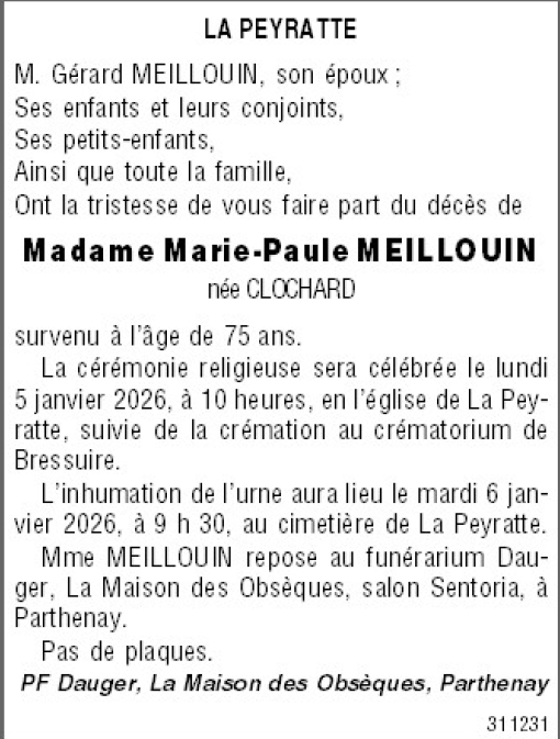 de Madame Marie-Paule MEILLOUIN née CLOCHARD