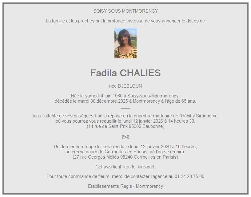 de Madame Fadila CHALIES