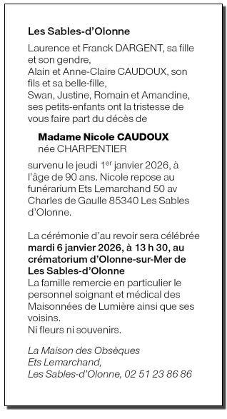 de Madame Nicole CAUDOUX née CHARPENTIER