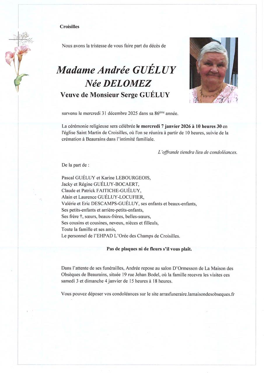 de Madame Andrée GUELUY née DELOMEZ