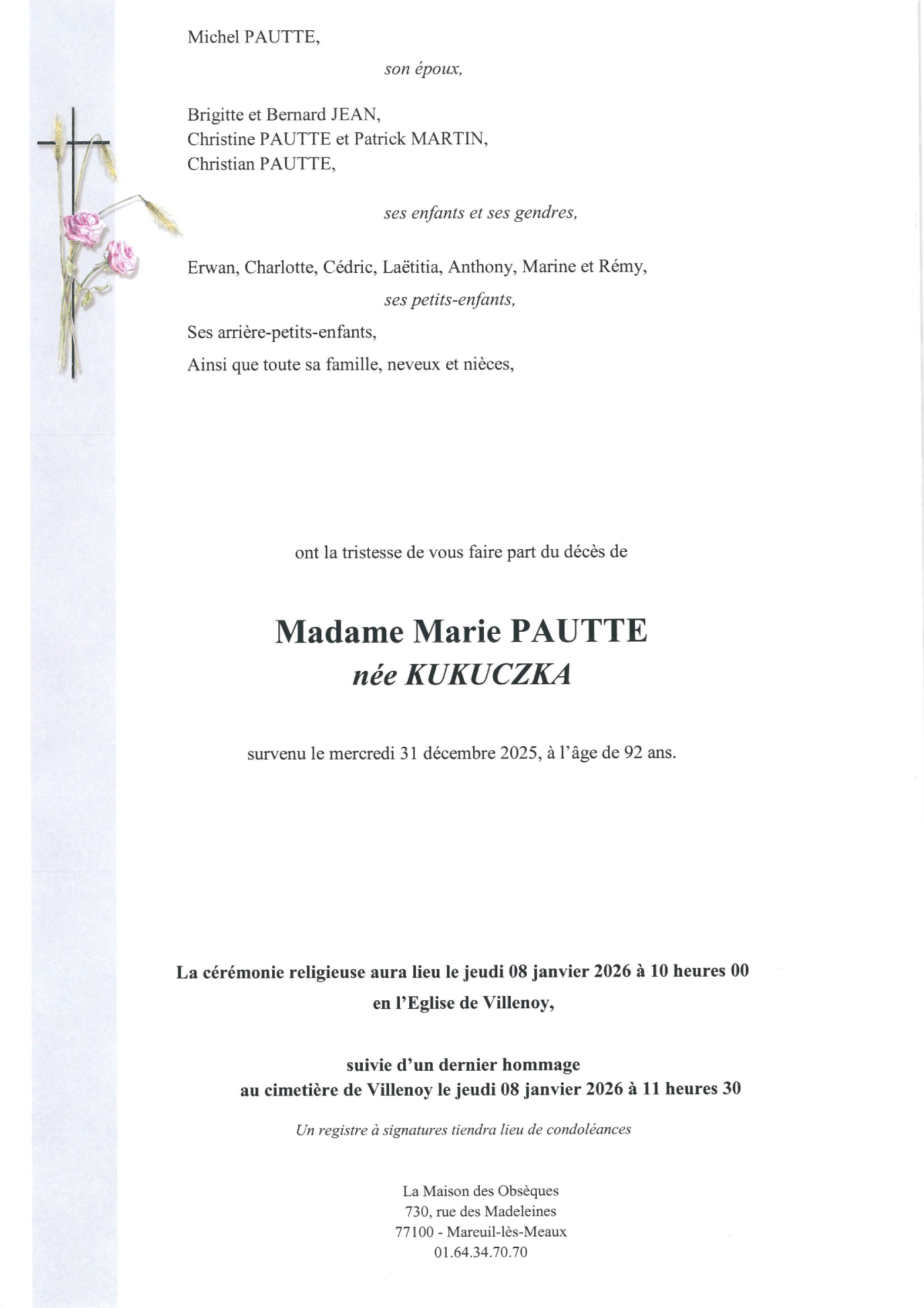 de Madame Marie PAUTTE née KUKUCZKA