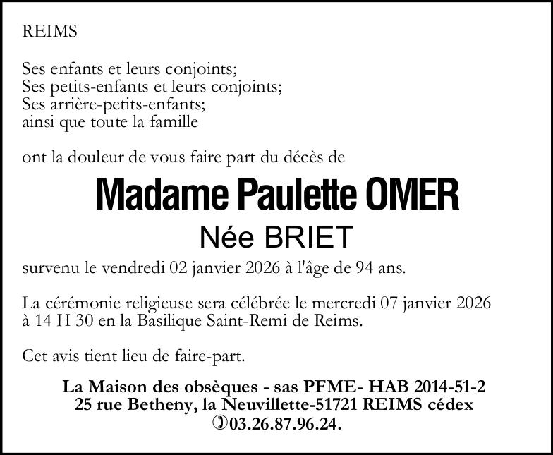 de Madame Paulette OMER