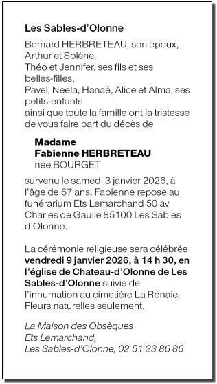 de Madame Fabienne HERBRETEAU née BOURGET