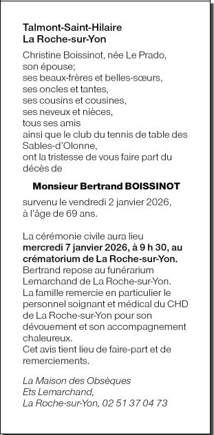 Cet espace « condoléances » est dédié à la mémoire de Monsieur Bertrand BOISSINOT.