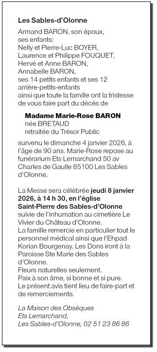 de Madame Marie-Rose BARON née BRETAUD