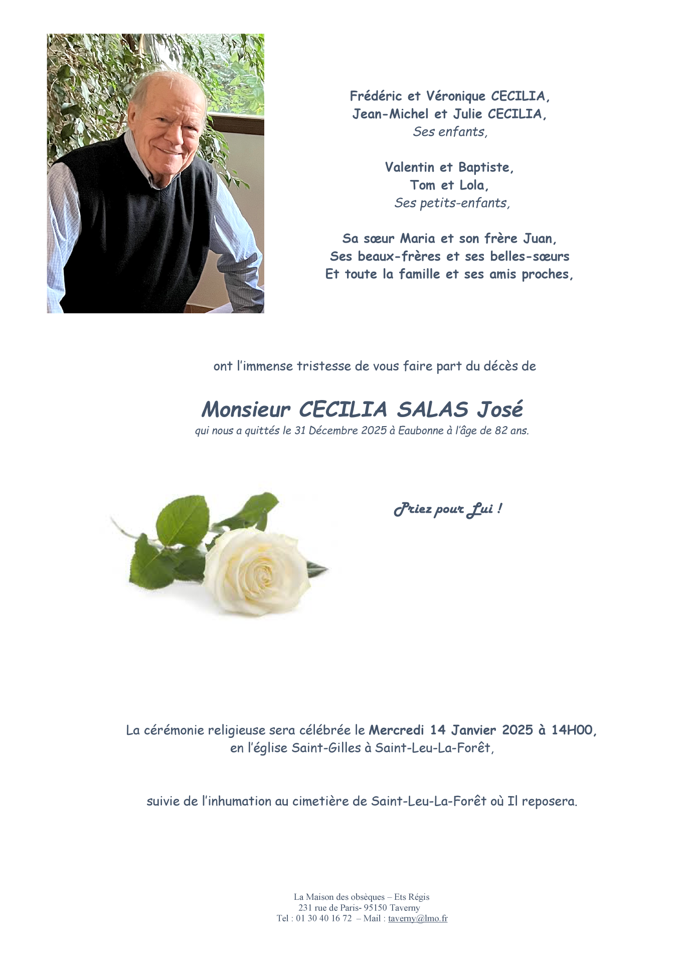 Cet espace « condoléances » est dédié à la mémoire de Monsieur José CECILIA SALAS.