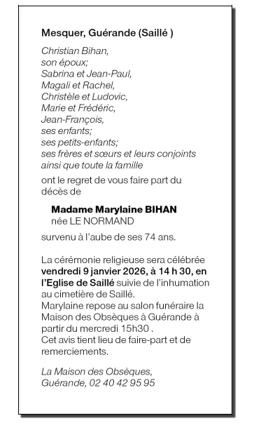 de Madame Marylaine BIHAN née LE NORMAND