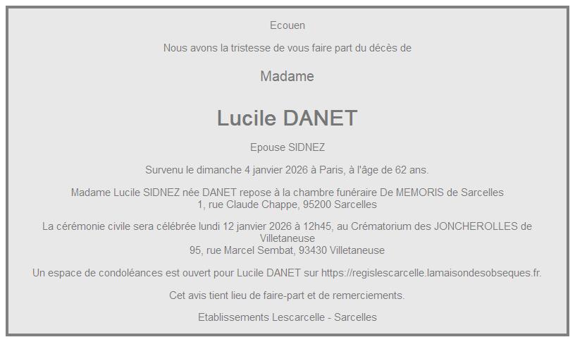de Madame Lucile SIDNEZ née DANET