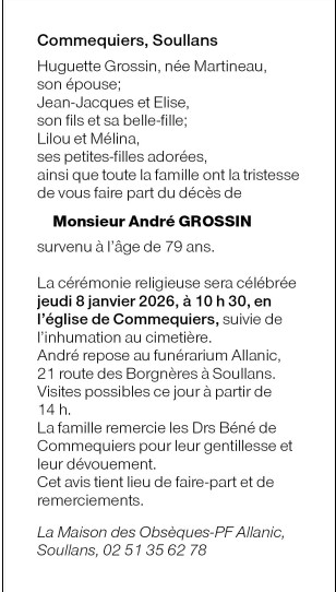 Cet espace « condoléances » est dédié à la mémoire de Monsieur André GROSSIN.