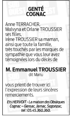 Cet espace « condoléances » est dédié à la mémoire de Monsieur Emmanuel TROUSSIER.
