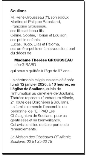 de Madame Marie Thérèse GROUSSEAU née GIRARD