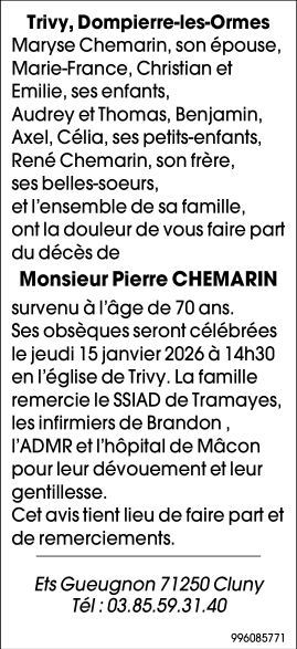 Cet espace « condoléances » est dédié à la mémoire de Monsieur Pierre CHEMARIN.