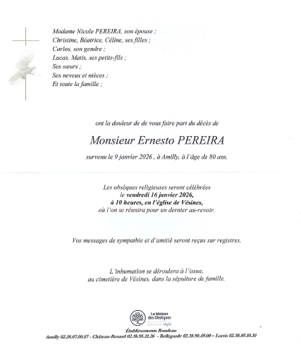 Cet espace « condoléances » est dédié à la mémoire de Monsieur Ernesto PEREIRA.