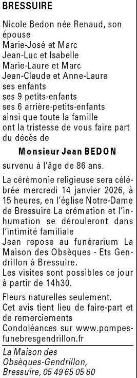Cet espace « condoléances » est dédié à la mémoire de Monsieur Jean BEDON.