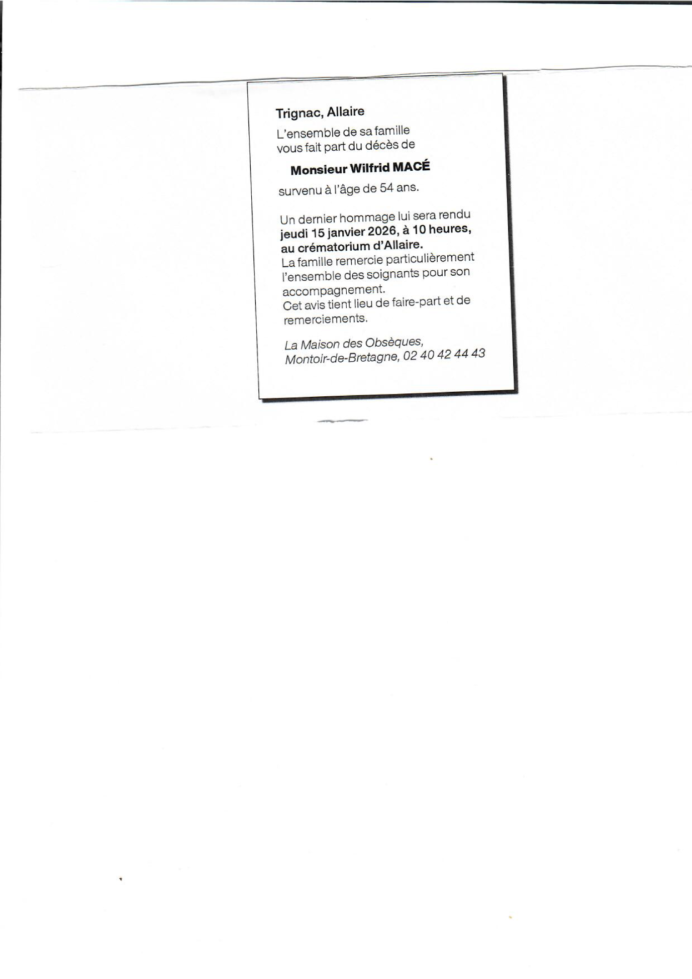 de Monsieur Wilfrid MACÉ