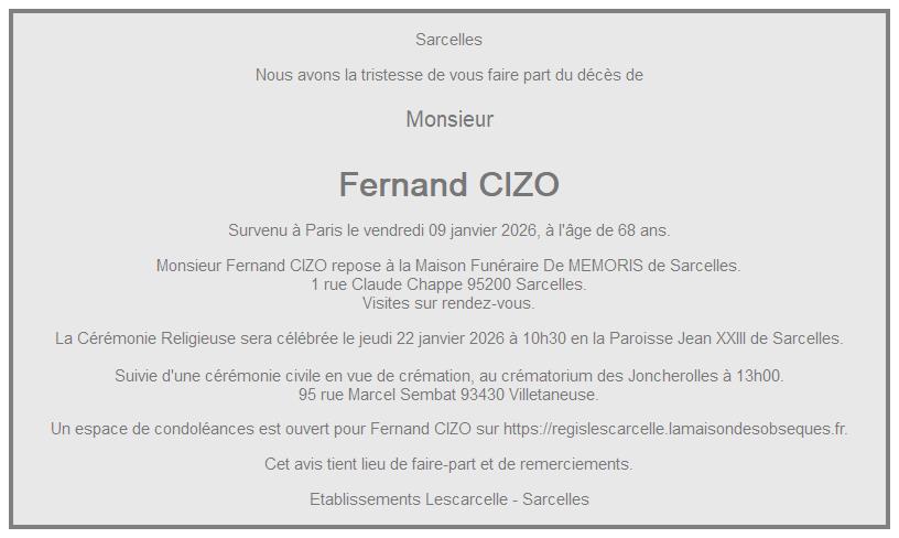 Cet espace « condoléances » est dédié à la mémoire de Monsieur Fernand CIZO.