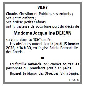 de Madame Jacqueline DEJEAN née PREVOST