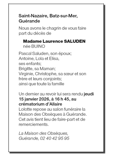 de Madame Laurence SALUDEN née BUINO