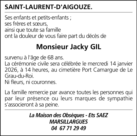 Cet espace « condoléances » est dédié à la mémoire de Monsieur Jacky GIL.