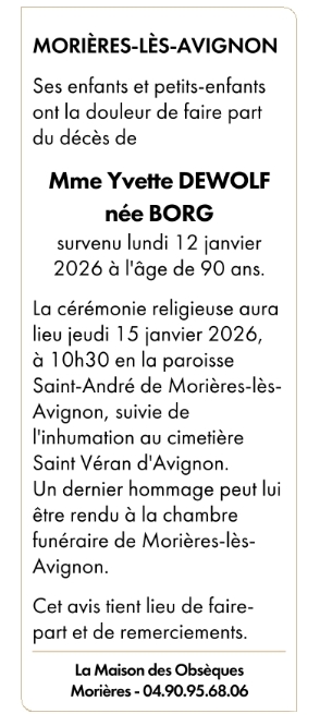 de Madame Yvette DEWOLF née BORG